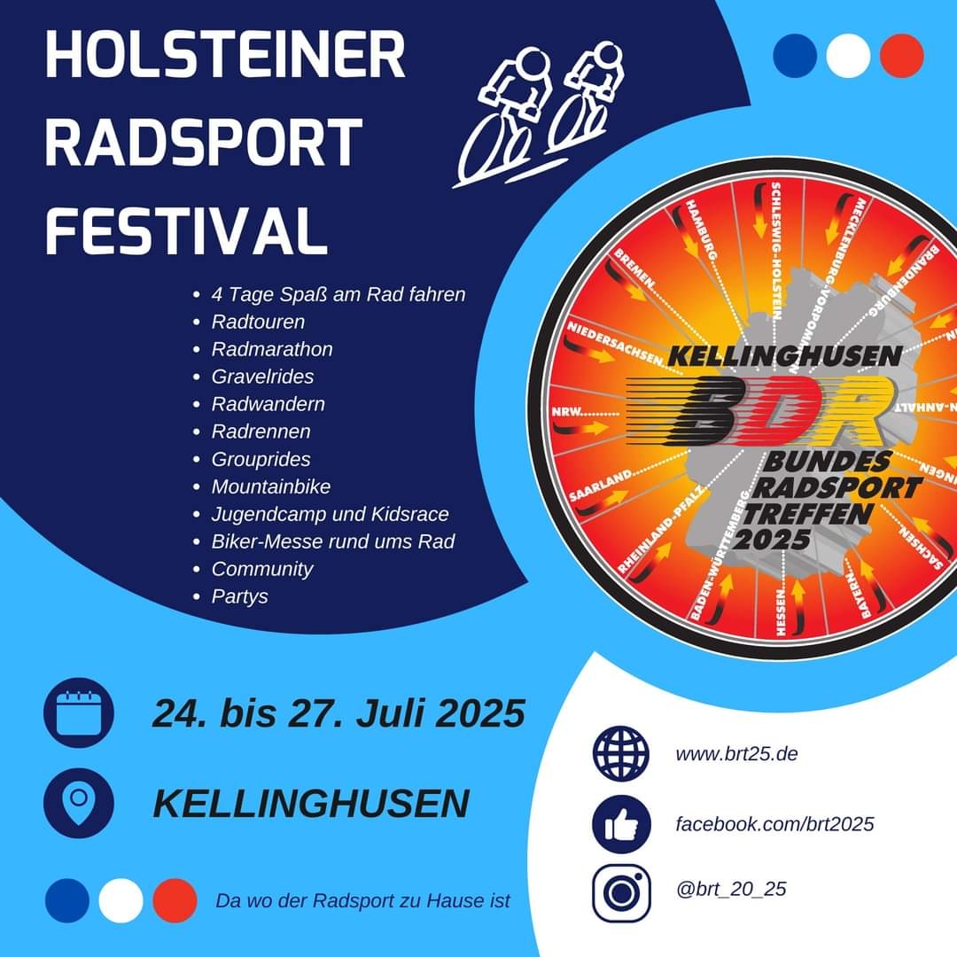 Beim Bundesradsporttreffen vom 24. bis 27. Juli 2025 in Kellinghusen in Schleswig-Holstein, das mit einem neuen Konzept vier Tage lang stattfand, waren insgesamt 17 Teilnehmer unseres Vereins dabei, davon drei Begleitpersonen ohne Rad.